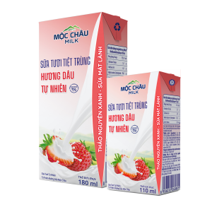 Sữa tươi tiệt trùng hương dâu Mộc Châu Milk 110ml được làm từ nguồn sữa tươi thuần khiết trên vùng thảo nguyên Mộc Châu, nơi có khí hậu trong lành, mát mẻ quanh năm, cho hương vị sữa luôn thơm ngon, mát lành. Sữa tươi tự nhiên giàu canxi, khoáng chất, chất đạm, chất béo tự nhiên và nhiều loại vitamin khác, cung cấp dinh dưỡng quý giá cho cả gia đình. ĐẶC ĐIỂM NỔI BẬT– Không sử dụng chất bảo quản. – Nguồn sữa tươi nguyên chất, thuần khiết mát lành từ thảo nguyên Mộc Châu cùng công nghệ tiệt trùng hiện đại – Không sử dụng chất bảo quản – Giúp trẻ nạp thêm năng lượng mỗi ngày, tăng cường đề kháng – Cung cấp canxi và các dưỡng chất thiết yếu giúp duy trì hệ xương và răng chắc khỏe, phát triển chiều cao – Mẹ có thể cho trẻ sử dụng Sữa tươi tiệt trùng Mộc Châu Milk vào bất cứ thời điểm nào trong ngày, tốt nhất là 1 hộp buổi sáng & 1 hộp buổi tối trước khi đi ngủ 1-2 tiếng để trẻ có giấc ngủ ngon. – Nhiều lựa chọn mỗi ngày với 7 hương vị thơm ngon của Sữa tươi tiệt trùng Mộc Châu Milk: + Sữa tươi tiệt trùng Có đường + Sữa tươi tiệt trùng Ít đường + Sữa tươi tiệt trùng Không đường + Sữa tươi tiệt trùng hương Cam + Sữa tươi tiệt trùng hương Dừa + Sữa tươi tiệt trùng hương Dâu + Sữa tươi tiệt trùng ChocolateQUY CÁCH ĐÓNG GÓI1 thùng gồm 48 hộp, thể tích thực 110ml/hộpTHÀNH PHẦNSữa tươi (93,6%), đường, chất ổn định (471, 407, 401, 412, 452(i)), hương dâu và hương sữa tổng hợp dùng cho thực phẩm, màu tự nhiên (120).LƯU ÝKhông dùng cho người không dung nạp sữa bò, dị ứng với lactose. Không dùng cho trẻ em dưới 12 tháng tuổiHƯỚNG DẪN SỬ DỤNGLắc đều trước khi uống. Ngon hơn khi uống lạnhCÁCH BẢO QUẢN– Bảo quản sản phẩm nơi khô ráo, thoáng mát, tránh ánh nắng trực tiếp và côn trùng gặm nhấm – Bao bì dễ bị tổn thương gây hư hỏng đến sản phẩm bên trong Xuất xứ: Việt Nam Nơi sản xuất: Việt Nam Ngày sản xuất: In trên bao bì sản phẩm Hạn sử dụng: 6 tháng kể từ ngày sản xuất